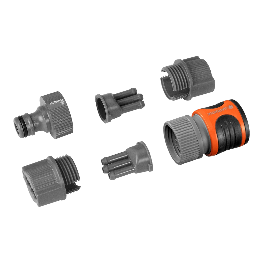 Het GARDENA Aansluitgarnituur voor sproeierslangen bevat alle aansluitstukken voor het Original GARDENA System voor aansluiting op de GARDENA Sproeierslang – bij de inlaat en uitlaat van de slang. De aansluitstukken kunnen gemakkelijk worden gemonteerd.