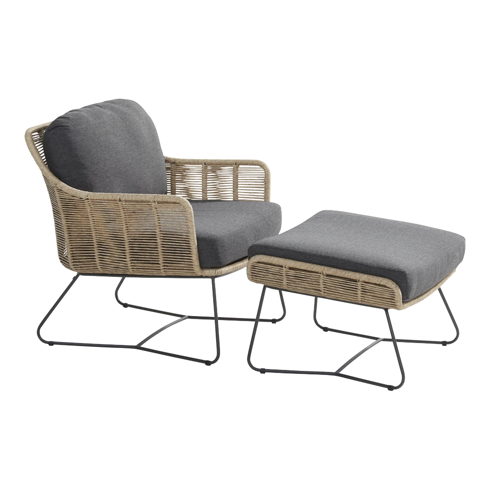 De Taste by 4 Seasons Outdoor Belmond Voetenbank is ideaal voor extra comfort bij de Belmond loungeset of Belmond loungestoel! De Belmond voetbank is gemaakt van RVS in de kleur antraciet met een naturel kleurig wicker afwerking. Deze voetenbank leveren wij inclusief gevuld kussen, het kussen is afritsbaar waardoor ze eenvoudig koud te wassen zijn. De kussens zijn gemaakt van hoogwaardige kwaliteit, waardoor ze het gehele seizoen buiten kunnen liggen. Ook is deze Belmond voetbank goed te combineren met de tuinmeubel loungeset en/of loungestoel van Belmond.