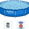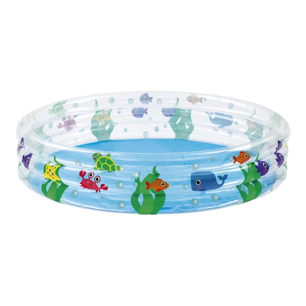 Het Bestway speelzwembad is gemaakt van stevig vinyl en bestaat uit 3 ringen in een ronde vorm. Het kinderbad is slechts 30 centimeter hoog en daardoor geschikt voor kinderen vanaf 2 jaar en ouder, mits er toezicht is van een volwassene. Je blaast het zwembadje binnen de kortste keren op. In het opblaaszwembad gaat een maximale inhoud van 282 liter water.