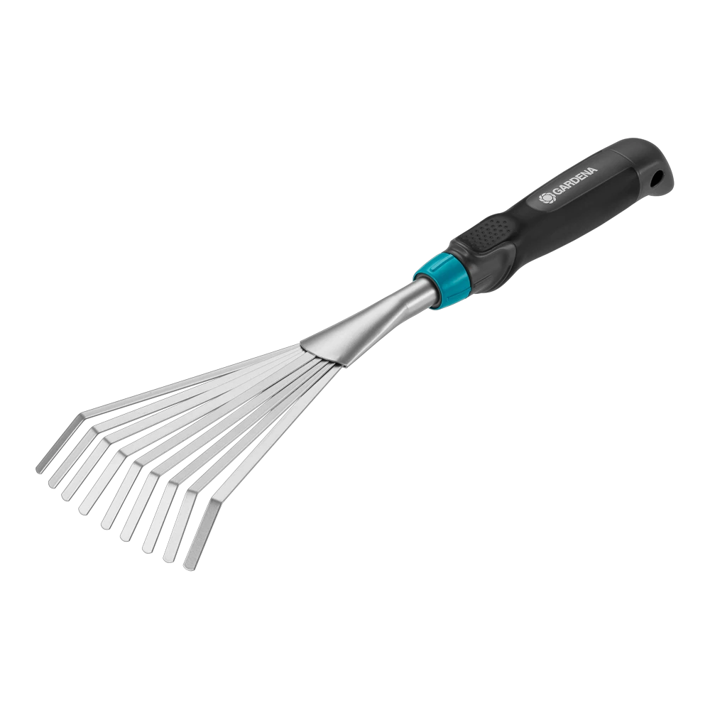 De GARDENA bladhark is ideaal om bladeren bij elkaar te vegen. De ergonomische handgreep met zacht component past perfect in de hand en de hoek aan het einde voorkomt wegglijden. De bladhark heeft een werkbreedte van 12 cm. Het blad is gemaakt van hoogwaardig staal en voorzien van een duroblast coating voor een lange levensduur.