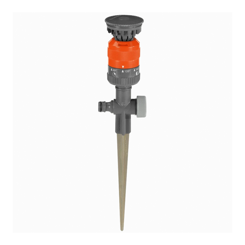 De GARDENA Comfort Cirkelsproeier Vario zorgt voor een gelijkmatige besproeiing van uw tuin. Deze cirkelsproeier kan een oppervlak van maximaal 225 m² besproeien en heeft een bereik van maximaal 8,5 m. De sproeier heeft sectorinstellingen die in stappen van 45° van 90° tot 360° kunnen worden ingesteld. U kunt de sproeier afzonderlijk voor uw tuin instellen. De speciale turbine voor het draaien van de sproeier garandeert een gelijkmatige verdeling van het water en de sproeirichting kan afzonderlijk worden ingesteld. Er kunnen meerdere sproeiers op elkaar worden aangesloten voor het besproeien van grote oppervlakken; vervang dan de einddop door een GARDENA Kraanaansluitstuk (art. nr. 901) of het GARDENA ‘Profi’ Maxi-Flow System Kraanaansluitstuk (art. nr. 2801). De cirkelsproeier wordt stevig op een spike gemonteerd, zodat hij moeiteloos in het gazon kan worden geplaatst. Het fijnmazige, uitneembare vuilfilter maakt het reinigen heel eenvoudig. Voor eenvoudige besproeiing van uw tuin.