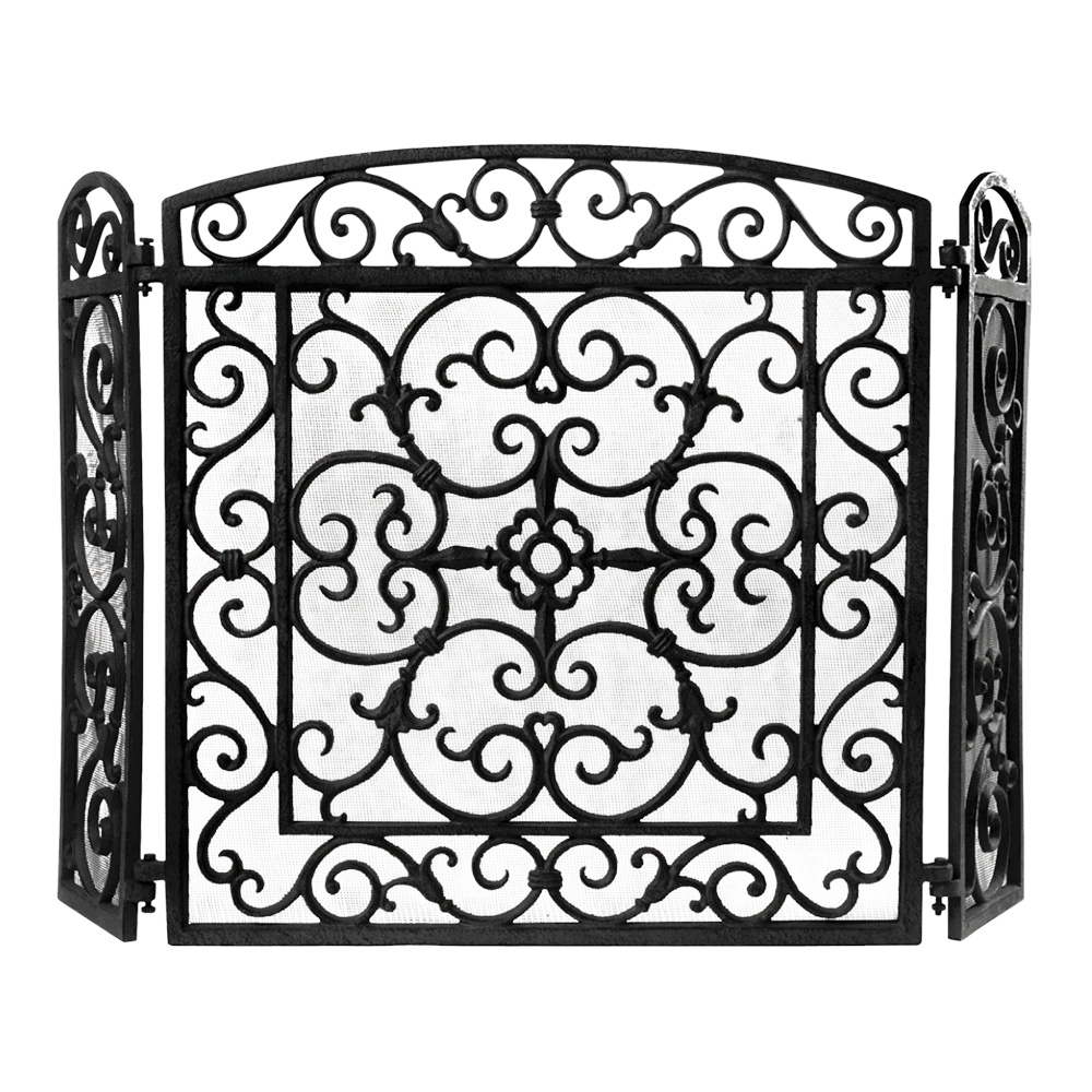 Dit decoratief gietijzeren haardscherm is volgens eeuwenoud vakmanschap en traditie geproduceerd. Dat maakt hem niet alleen bijzonder door de materiaalkeuze, maar ook door zijn functie. Het voorkomt namelijk dat rondvliegende vonken het parket of tapijt beschadigen, dankzij het fijn metaalgaas achter de sierlijke krullen.