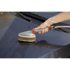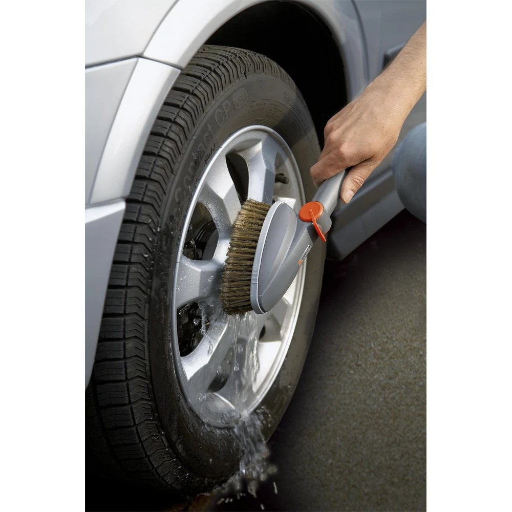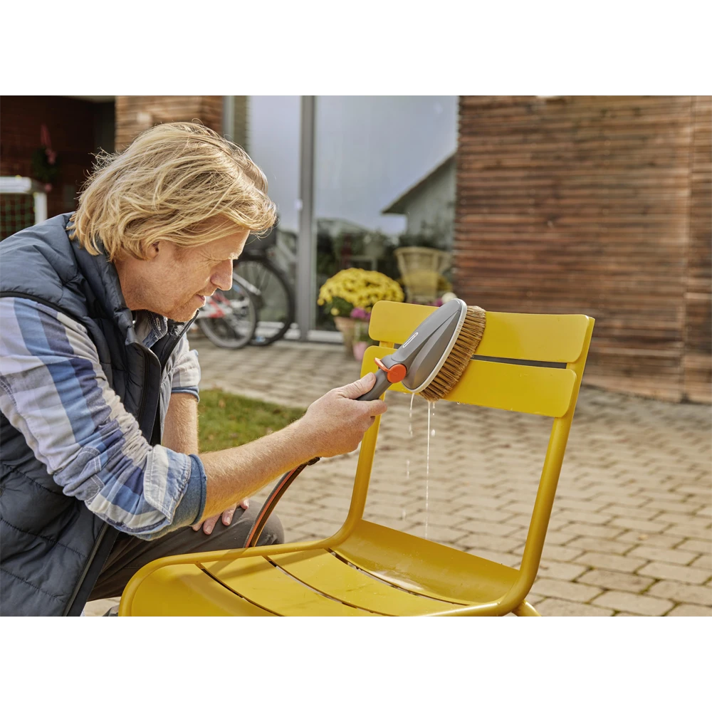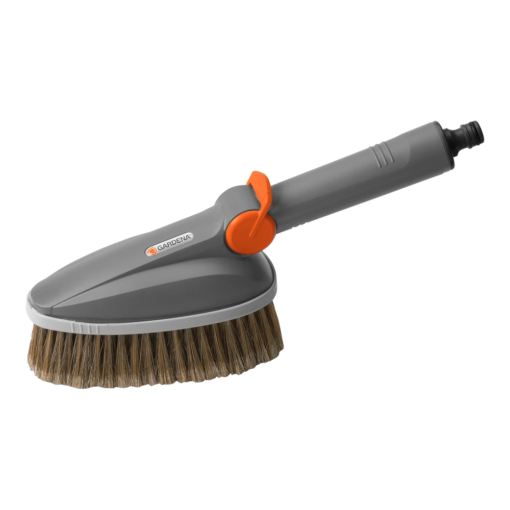 Met de comfortuitvoering van de GARDENA handwasborstel wordt reinigen heel eenvoudig. De handswasborstel met platte en lichte borstelkop kan op de watertoevoer worden aangesloten en in smalle ruimten komen. De borstel reinigt kwetsbare oppervlakken, zoals tuinmeubilair, garagedeuren en voertuigen, voorzichtig en effectief. De handwasborstel met Original GARDENA System-aansluiting heeft hoogwaardige PET borstelharen. De comfortabele, traploos instelbare en vergrendelbare watertoevoer kan met één hand worden geregeld. U kunt de watertoevoer op basis van uw behoeften regelen. De strip van zachte kunststof rondom voorkomt krassen. Voor effectief reinigen kunnen er GARDENA shampoostaafjes worden toegevoegd. Zo gemakkelijk kan schoonmaken zijn. Niet te gebruiken in combinatie met Original GARDENA Cleansystem waterstelen.