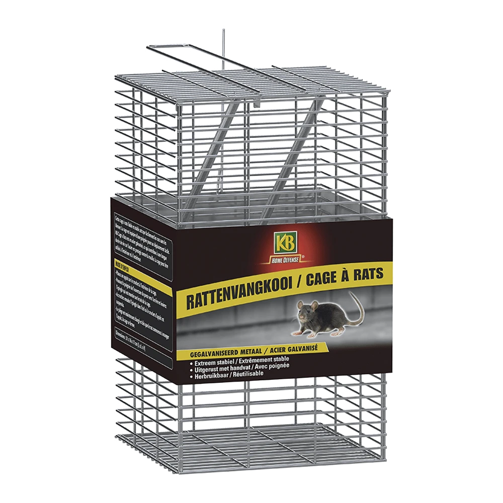 KB Rattenvangkooi is een betrouwbare en stabiele rattenvangkooi en vangt ongecompliceerd ratten zonder letsel toe te brengen. De rattenkooi is uitgerust met een handvat om hem gemakkelijk te kunnen verplaatsen. KB Rattenvangkooi is gemaakt van gegalvaniseerd staal, wat bijdraagt aan een lange levensduur omdat het staal beschermd wordt tegen roest. De kooi kan zowel binnen als buiten gebruikt worden.