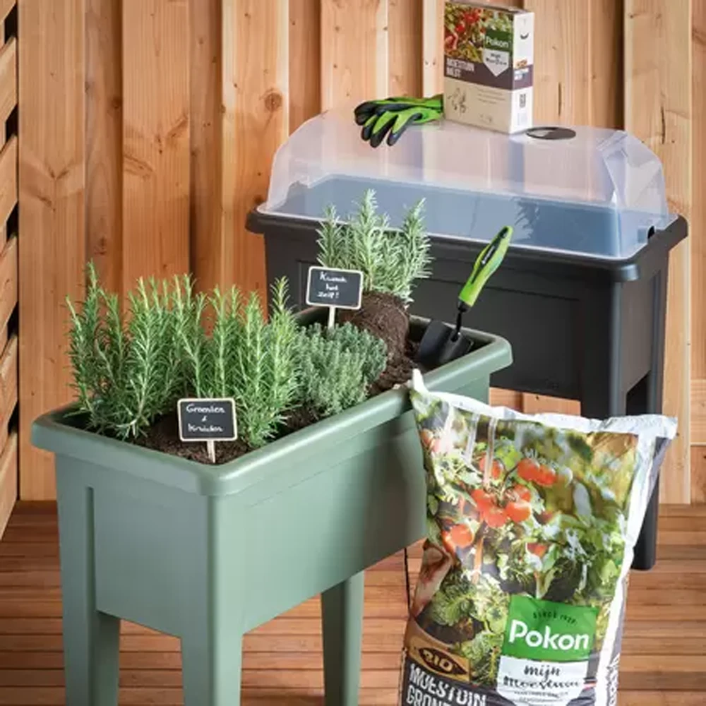 Deze kweektafel is gemaakt van gerecycled kunststof (polyetheen) en is zowel uv- als vorstbestendig. Zo kan hij prima met plantjes buiten blijven staan in de winter. Wanneer de kweekbak niet gebruikt wordt, komt de levensduur altijd ten goede als deze binnen opgeborgen staat. Daarnaast is hij eenvoudig met een lauwwarm sopje schoon te maken.