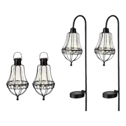 Lumineo Solar Set Met Tuinlamp En Lantaarn – LED – D14.5 X H84cm – Zwart – 4st.