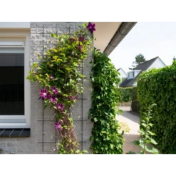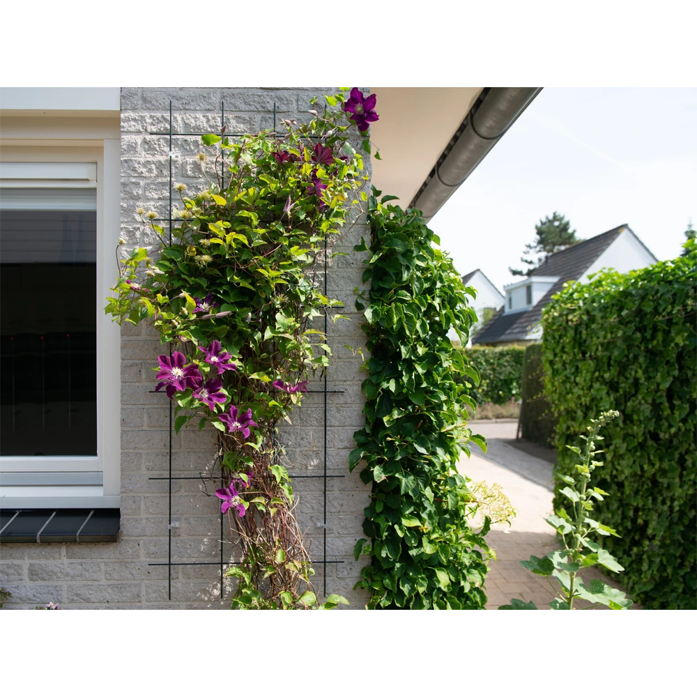 Decoratief rechthoekig metalen klimrek van Nature, gemaakt van grijs geplastificeerd verzinkt staal. Het weerbestendige klimrek van duurzaam materiaal is geschikt voor het begeleiden en ondersteunen van klimplanten. Geleverd met bevestigingsset. Afmeting: H 145 x 57 cm.
