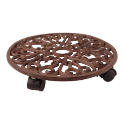 Ronde plantentrolley van gietijzer voorzien van zwenkwielen maat L
