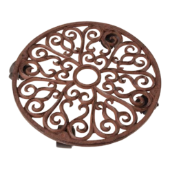 Ronde plantentrolley van gietijzer voorzien van zwenkwielen maat L