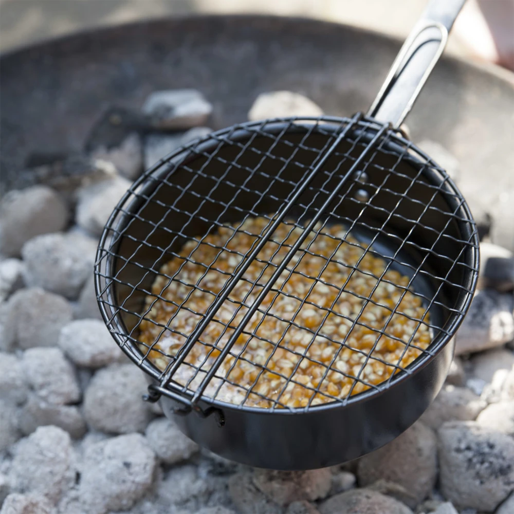 Maak de heerlijkste popcorn buiten met deze speciaal ontwikkelde popcornpan. Dankzij de lange steel is deze pan uiterst geschikt voor open vuur, en biedt het een veilige afstand tot de vlammen. Het rooster aan de bovenkant van de pan zorgt ervoor dat de gepofte maiskorrels niet uit de pan springen. Eenvoudig op te hangen door middel van oog aan het uiteinde van de steel.