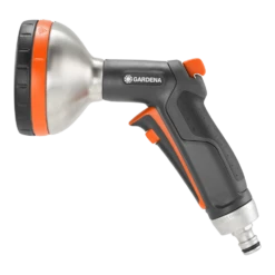 De GARDENA Premium Multi Broes is ideaal voor alle bewateringsklussen dankzij de 5 verschillende straalsoorten. De nevelstraal is perfect voor het bewateren van zaaigoed. De zachte straal of broesstraal zorgt ervoor dat de bloembedden goed kunnen worden bewaterd. De harde straal is voor reinigingswerkzaamheden. De Premium Multi Broes is voorzien van metalen componenten op de sproeikop en het verbindingsstuk waardoor het product zeer duurzaam is. De ergonomische handgreep zorgt voor optimaal gebruikscomfort. De waterstroom kan traploos worden ingesteld. Voor langdurige sproeiwerkzaamheden kan de impulshendel met de geïntegreerde knop worden vastgezet. Het filter kan worden verwijderd en schoongemaakt. De Premium Multi Broes beschikt bovendien over geïntegreerde bescherming tegen vorst.