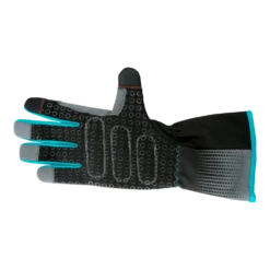 Als u de handschoen voor rozen in maat M van GARDENA draagt, kunt u voorzichtig werken en tegelijkertijd goed beschermd zijn. De tuinhandschoen voor middelgrote handen is voorzien van een lange boord met verstelbare polssluiting. Deze combinatie beschermt uw pols en uw onderarmen betrouwbaar. Bovendien worden bijzonder gevoelige gebieden zoals vingers en de handpalm beschermd met aramidemateriaal. Dit materiaal is perforatiebestendig, zodat doorns geen probleem meer zijn. Net zo praktisch: U kunt de tuinhandschoen met de Mobile Touch-functie op uw duim en wijsvinger gebruiken om het touchscreen van een smartphone of tablet eenvoudig te bedienen. Het vermoeiende uittrekken van handschoenen behoort tot het verleden met de voor smartphonegebruik geschikte handschoen. Een ander materiaalkenmerk dat de handschoen voor rozen biedt, is dat deze niet alleen beschermt, maar ook een Oeko-Tex® Standard 100-certificering heeft en dus vrij is van schadelijke stoffen.
