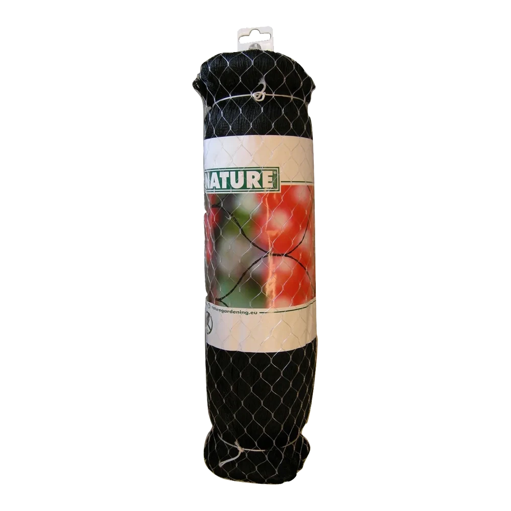 PRIMO. Dit zwarte net is van polyethyleen, is uv-bestendig en heeft een dichtheid van 12 g/m². De mazen hebben een opening van 28 mm en de draden hebben een dikte van 16 tot 17 μ. Het net kan meerdere malen gebruikt worden. Dit tuinnet heeft een afmeting van 5x5m