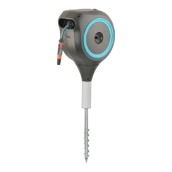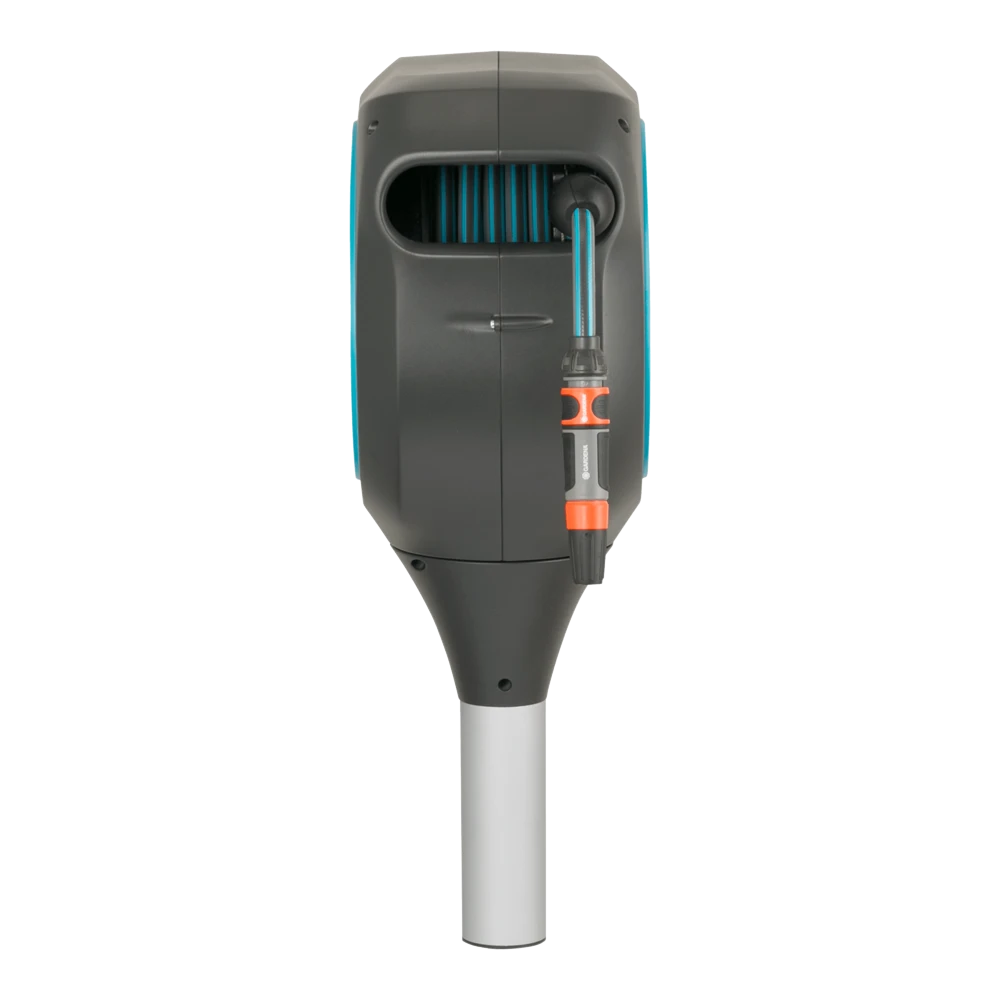 De slangenbox RollUp M van GARDENA biedt niet alleen een veilige en ruimtebesparende opslag voor uw tuinslang, maar u zult ook blij zijn met de moeiteloze bewatering van uw middelgrote tuin. De handige slangenbox wordt in de grond verankerd met een stevige standaard op een plek naar keuze in een bloembed of op het gazon. Met behulp van een bevestigingsstang kunt u de metalen pen nog eenvoudiger in de grond schroeven. Voor gebruik trekt u de 20 meter lange slang uit tot de gewenste lengte en kunt u meteen beginnen met bewateren. Dankzij de ingebouwde korte vergrendelingspunten is het hanteren van de tuinslang eenvoudiger dan ooit: zodra u stopt met de slang, wordt de vergrendeling automatisch vastgezet op de gewenste slanglengte. Het innovatieve ontwerp kan 360 graden worden gedraaid, voor maximale flexibiliteit bij het bewateren van de tuin. De box volgt altijd uw bewegingen, zodat u elke hoek van uw tuin gemakkelijk kunt bereiken zonder dat de tuinslang knikt of in de knoop raakt. Bovendien bespaart u met deze slangenbox vermoeiend opwikkelen en oprollen en hebt u geen last van vuile handen: door kort aan het uiteinde van de slang te trekken, wordt de vergrendeling ontgrendeld en wordt de tuinslang dankzij een geïntegreerde stalen veer volledig automatisch en betrouwbaar opgerold. De box heeft een praktische slanggeleider die de slang op zijn plaats houdt, zodat er geen blokkades of knopen optreden. De innovatieve RollControl-technologie zorgt voor veilig, gecontroleerd en moeiteloos oprollen zonder dat de slang in de war raakt. Het hoogwaardige materiaal is bestand tegen UV en vorst, heeft een lange levensduur en is onderhoudsvrij. De box is zeer compact en stijlvol ontworpen, zodat deze eenvoudig in elke tuin kan worden geïntegreerd. Hij is bovendien afgesteld op de hoogte van de GARDENA robotmaaiers, zodat het gazon rond de slangenbox altijd wordt onderhouden en gemaaid. De slangenbox wordt geleverd met een flexibele aansluitslang, alle benodigde montageonderdelen, de Original GARDENA System elementen en een sproeier met twee verschillende sproeipatronen. GARDENA geeft vijf jaar garantie op de slangenbox RollUp M. Bewatering die altijd gebruiksklaar is.
